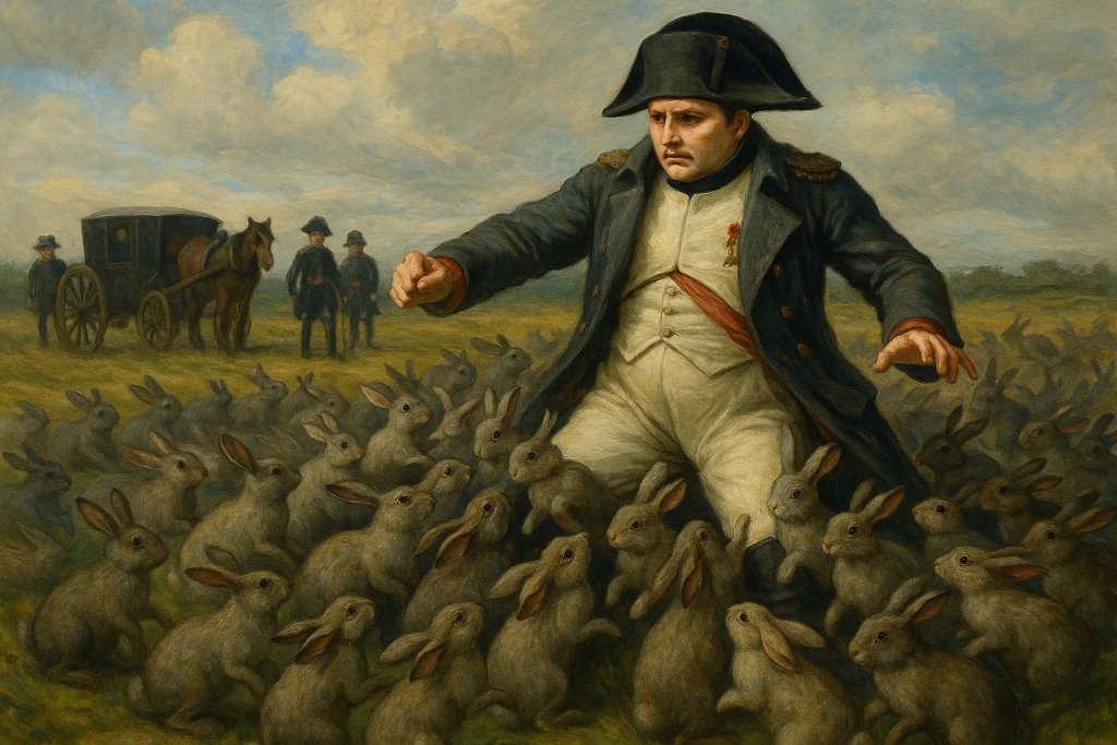 In 1807, after the Treaty of Tilsit, Napoleon agreed to a celebratory rabbit hunt for himself and his officers. Staff gathered hundreds of tame rabbits. When the cages opened, the animals ran toward the emperor instead of away. They swarmed boots and coats, climbed uniforms, and kept charging the carriages. The hunt turned into a retreat. It reads like slapstick, yet the accounts hold up. For a conqueror who controlled half of Europe, being overrun by friendly rabbits is almost poetic.