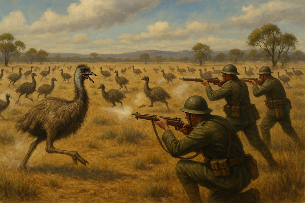 Western Australia, 1932. Farmers were losing crops to emus. The government sent soldiers with machine guns to push the birds back. On paper, the plan looked simple. In practice, the emus moved in scattered groups, sprinted fast, and absorbed the chaos like veterans. The soldiers expended plenty of ammunition and achieved almost nothing. After a few awkward field reports, the operation ended. The emus kept the fields. If you want a straight reference, try Medium. It is exactly as ridiculous as it sounds.